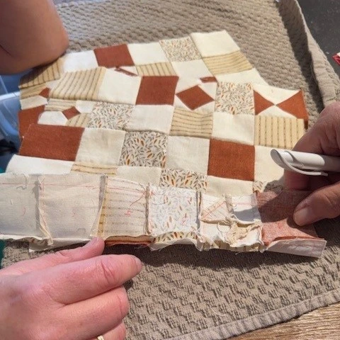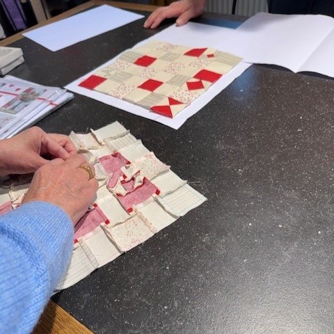 Tijdens de workshop van Marie Suarez vorige zaterdag werd er trouwens ook met patchworkstof gewerkt. Vorige maand maakten enkele deelnemers voor het eerst kennis met het aan elkaar naaien van verschillende lapjes stof — en dat bleek duidelijk in de smaak te vallen.